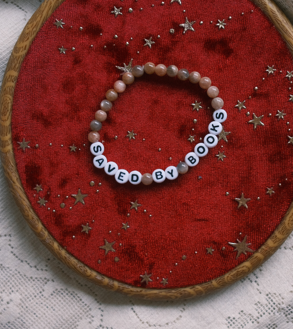 *Saved By Books made with natural Sunstone -Sunstone is good for brightening moods, bringing emotional and spiritual warmth, and helping to motivate those who stand in its light