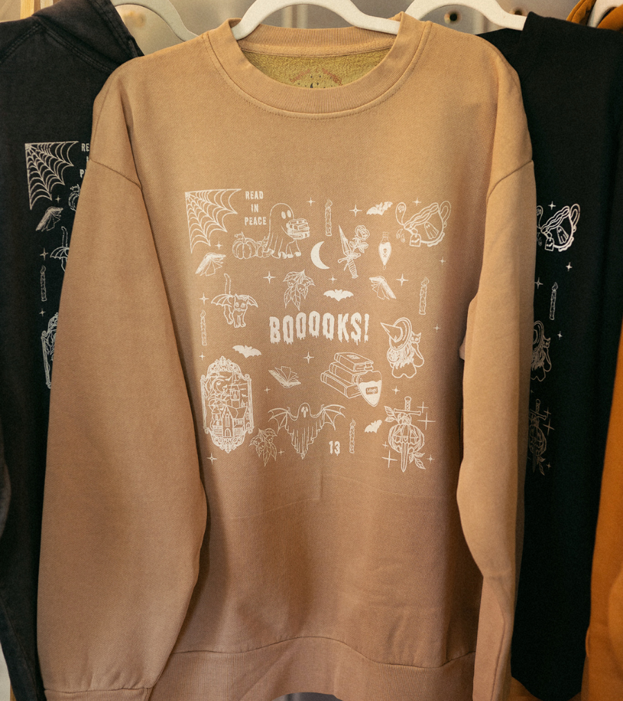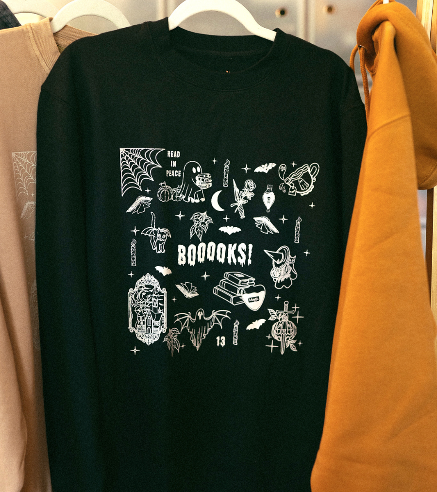 Calling all romantasy and fantasy romance readers—get ready to add some spooky flair to your wardrobe! Our BOOOOKS! Spooky Tee is the perfect blend of spooky Halloween vibes and bookish magic, designed especially for those who love diving into worlds of adventure, magic, and romance. Featuring a ghost carrying a stack of beloved novels, enchanted bats, gothic castles, and witchy bookish elements, this shirt is a must-have for anyone who enjoys escaping into a good fantasy romance book during the cozy autumn months.