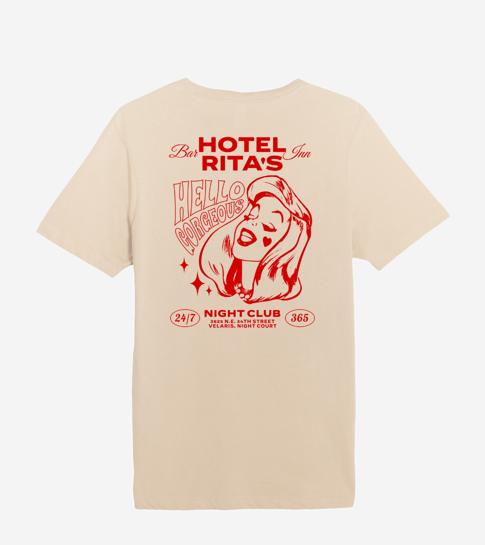 So what are you waiting for? Order your Hotel Rita's t-shirt today and join the Inner Circle at their favorite haunt in the City of Starlight!