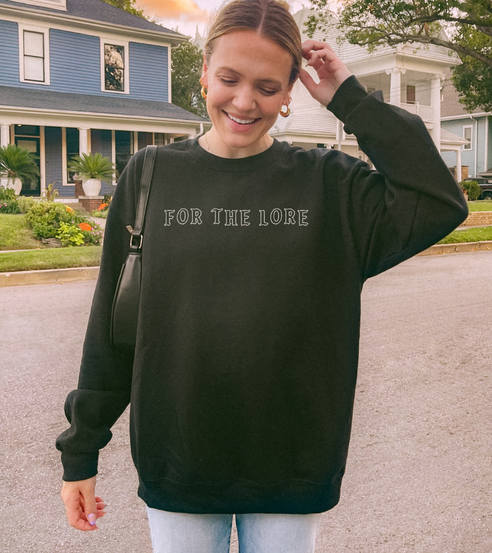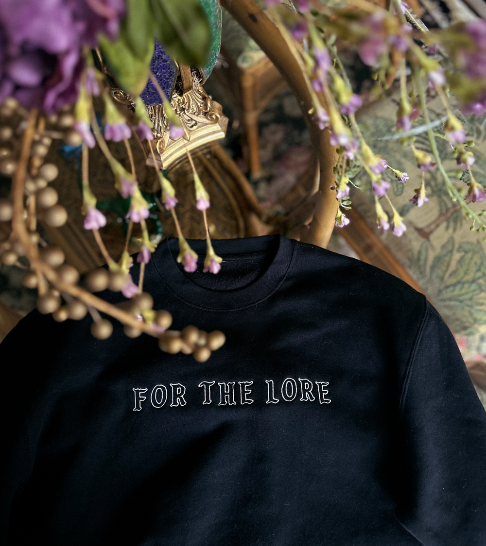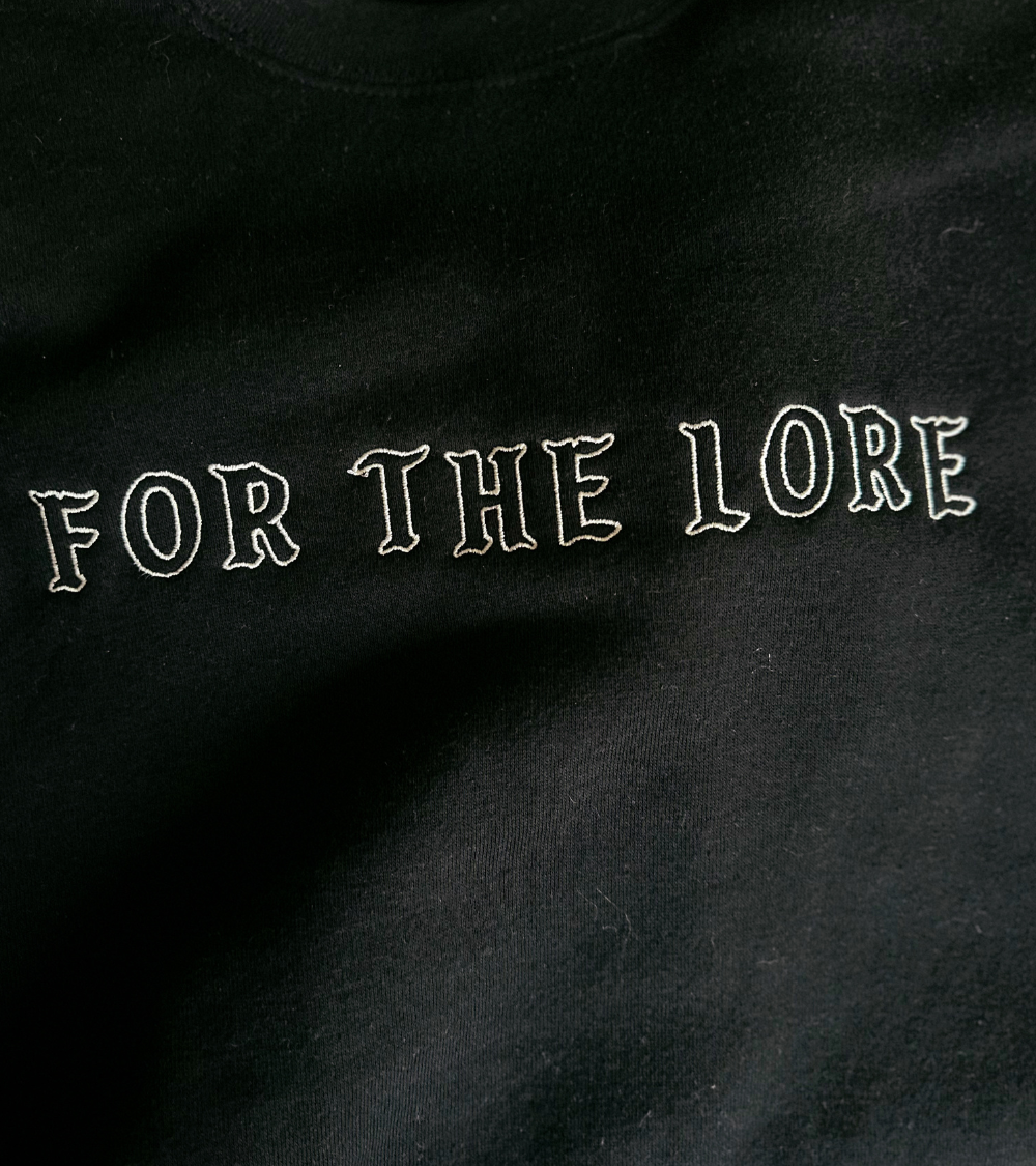 Preorder your For The Lore Embroidered Crewneck today and wear your love for the lore wherever your story takes you. Don’t wait—this exclusive design won’t last forever!