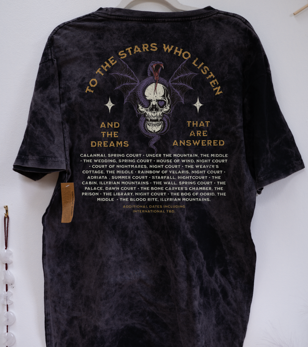 So, what are you waiting for? Add the Prythian World Tour t-shirt to your collection today and show off your love for Sarah J. Maas' A Court of Thorns and Roses series. Don't miss out on this limited edition t-shirt, which is sure to become a must-have for any book lover. Get yours now and join the Inner Circle of ACOTAR fans.
