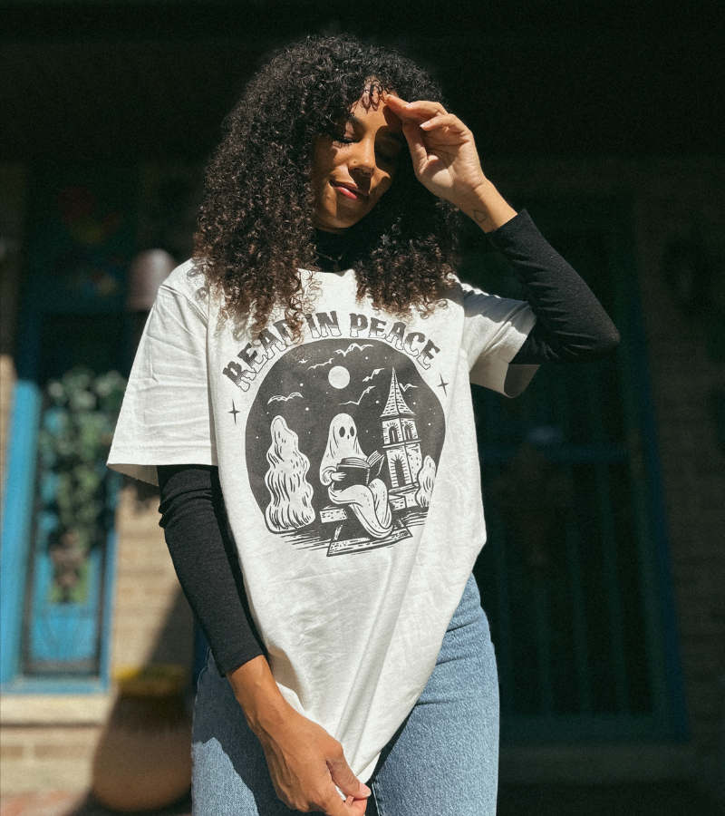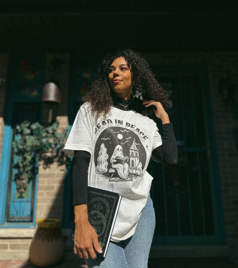 Calling all bookish souls who find solace in the eerie embrace of a good read! Stardust and Moonlight presents the "Read In Peace" hoodie, a bewitching blend of literary charm and supernatural vibes that'll have you reading 'til the witching hour.