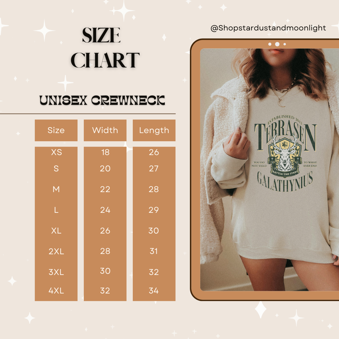 *Please note that in an effort to be inclusive to all magical babes we use a variety of premium vendors for our merchandise so some slight color variations might occur if ordering size 4X. It is highly encouraged to measure the shirts you currently own and reference the size chart to see what you you will feel most comfortable in. Please feel free to reach out with any questions about sizing.